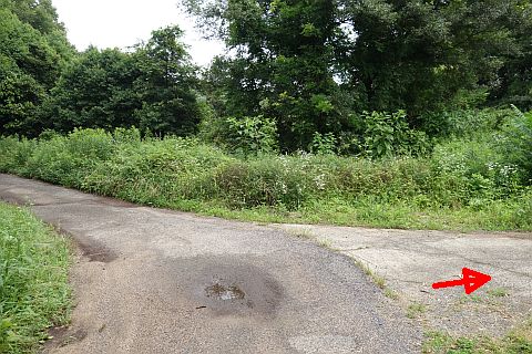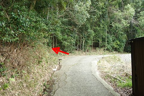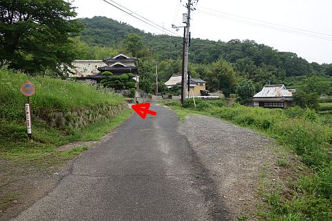丁字路から細道を北へ20m進み、左折して西へ16m進む
