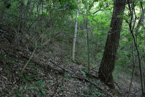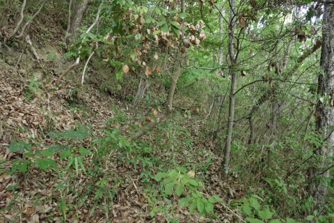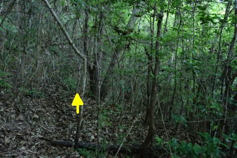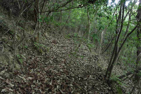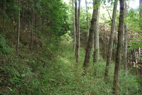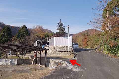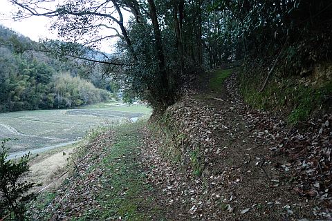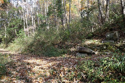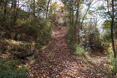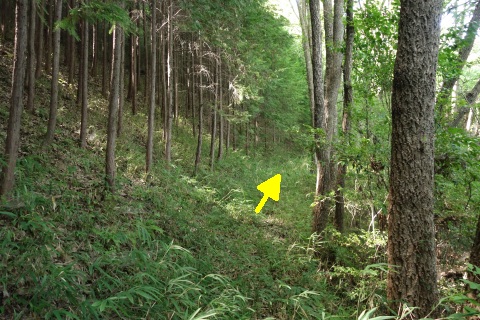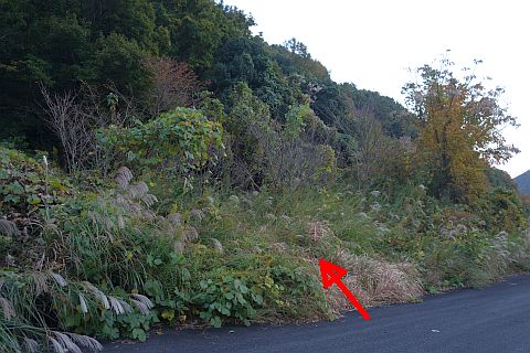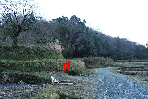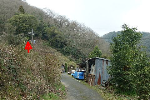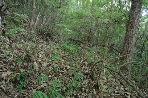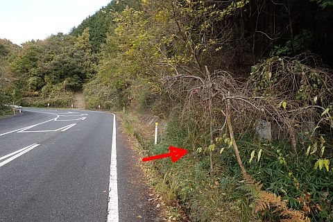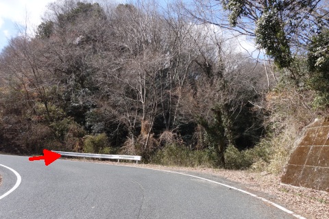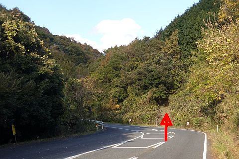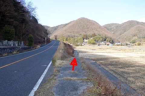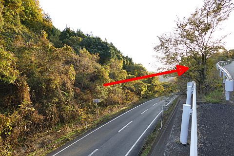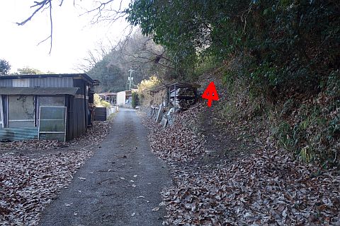 県道48号線の五叉路から未舗装路を西南西へ180m上る