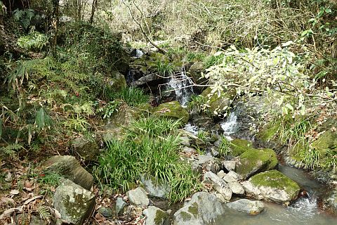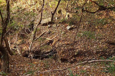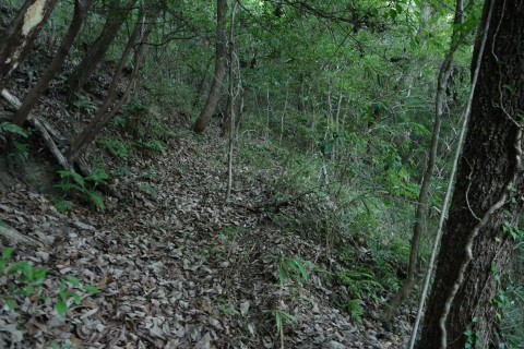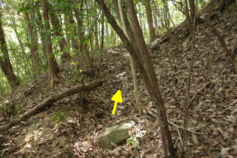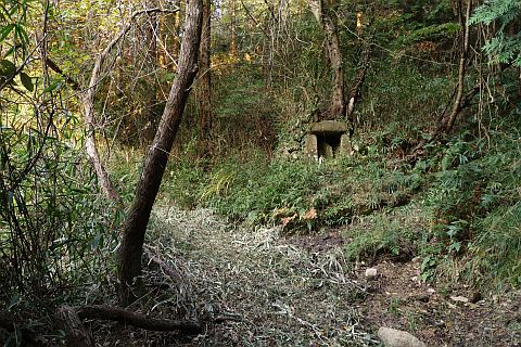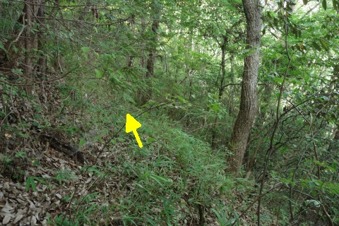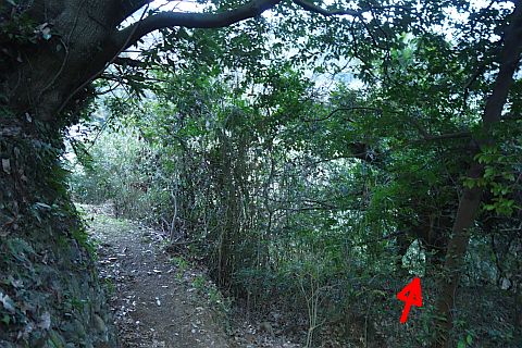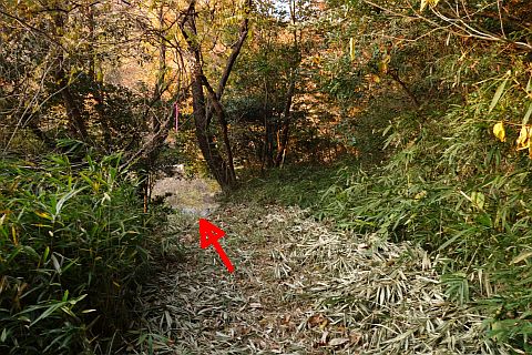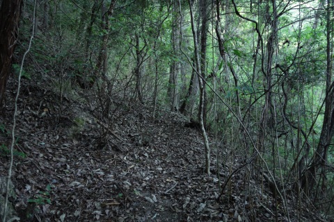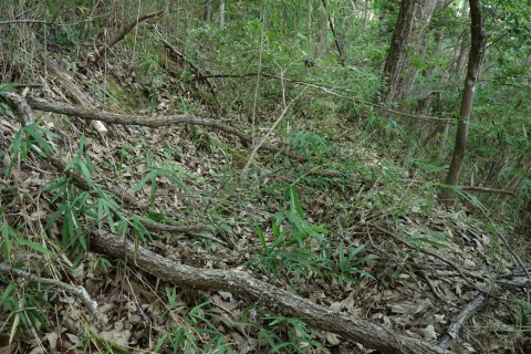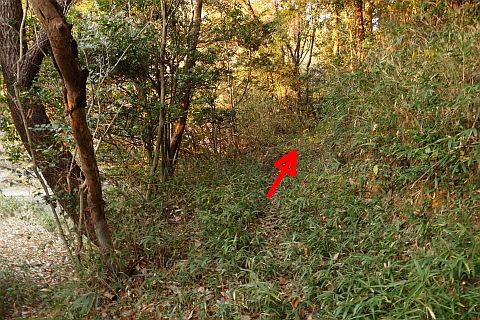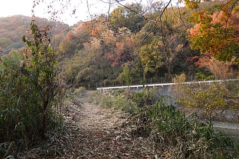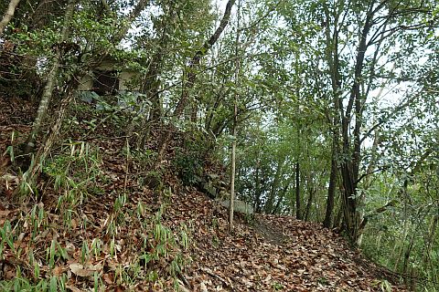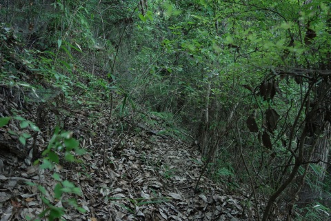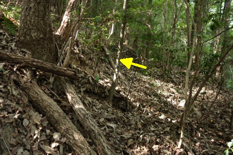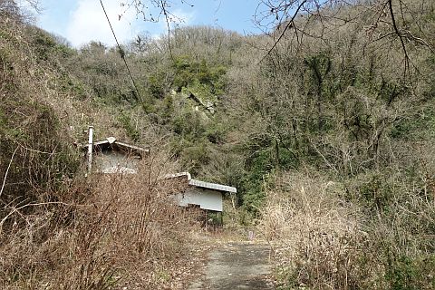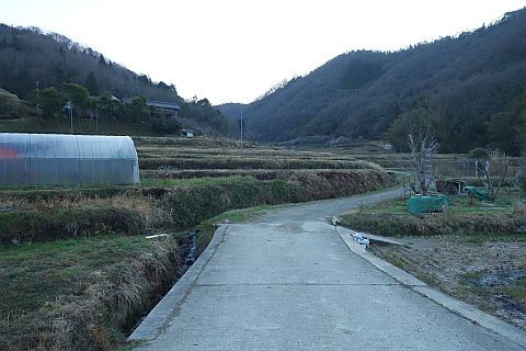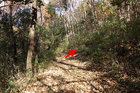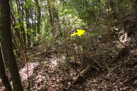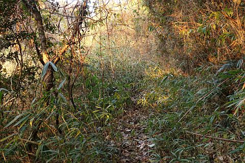 県道48号線の五叉路から未舗装路を西南西へ180m上る