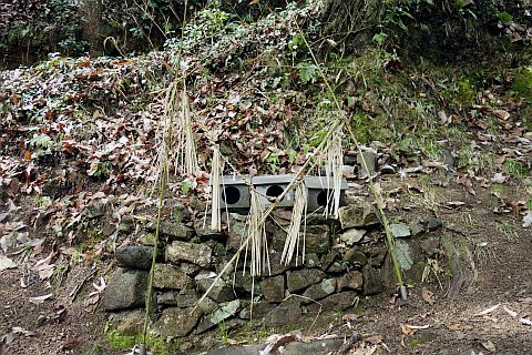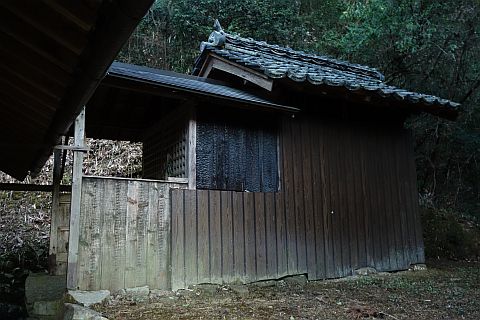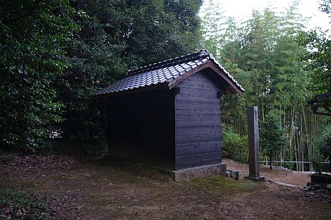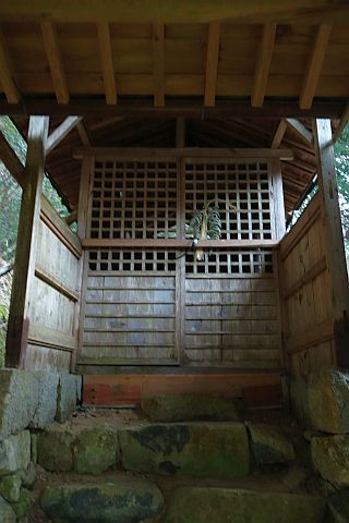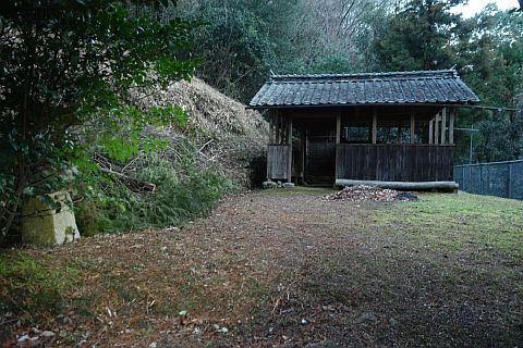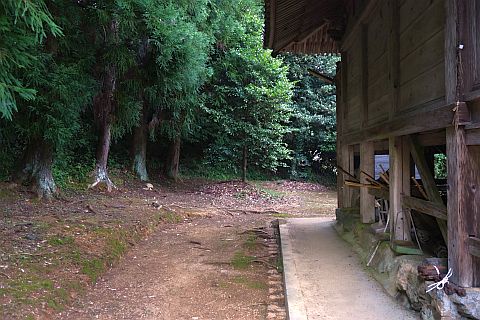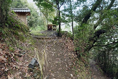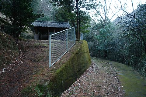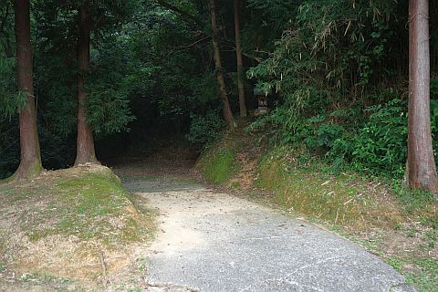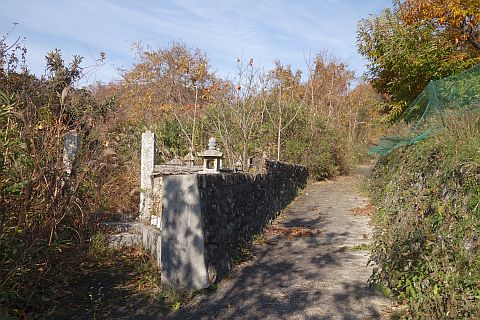 右折して山際の道を北東へ44m進み、左折して墓地への参道を北へ30m上る。
