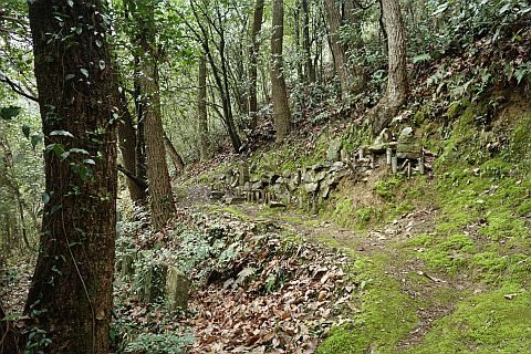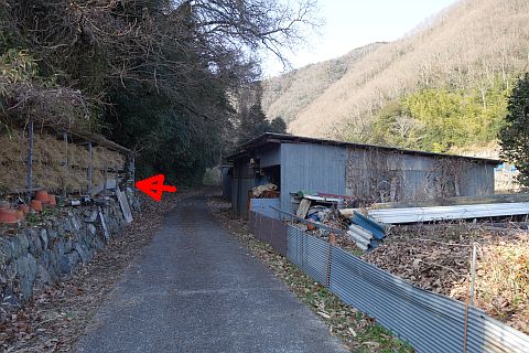 徒歩の場合は県道から別れて松山成羽道を北東へ140m上る