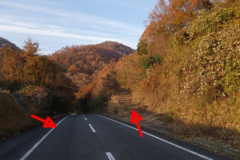 ここから旧道(現在は通行困難)を北へ700m程上ると毛野地区