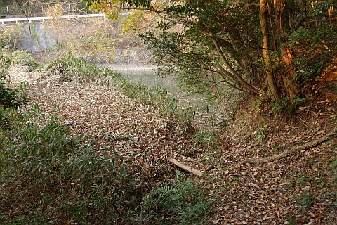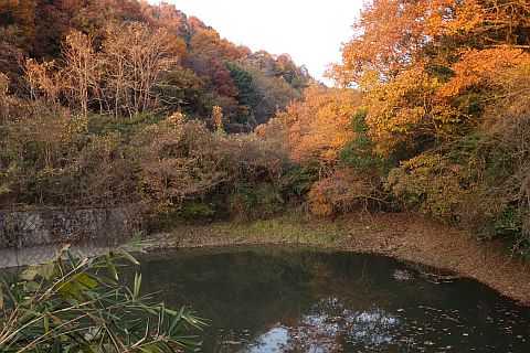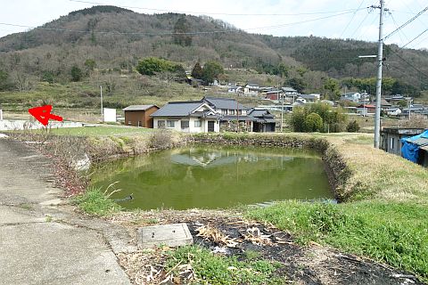 池の土手の横の丁字路に戻り、土手道を北西へ55m進む