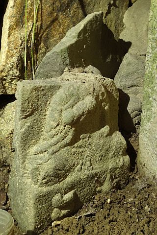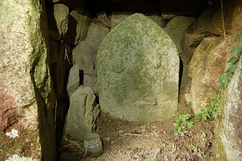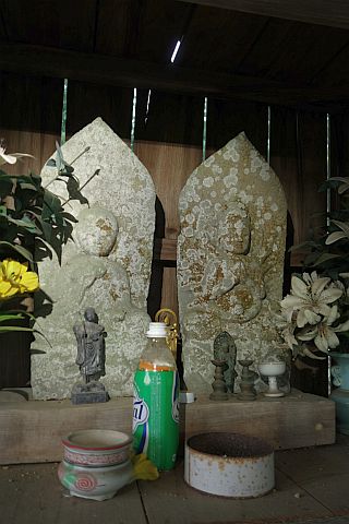 旧像が破損したので、二尊石仏型の新像に置き換えられたものと思われる