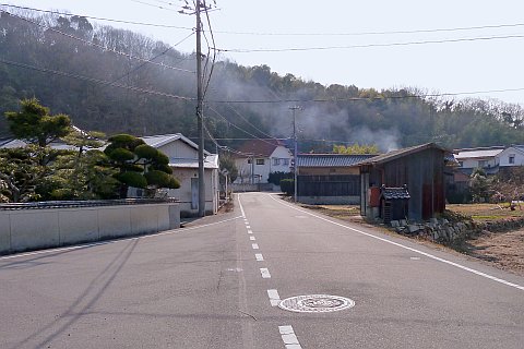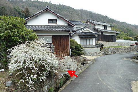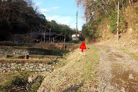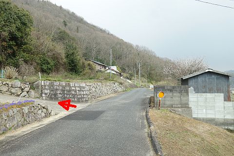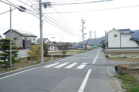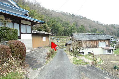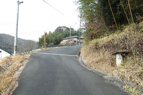 旧道に戻り、南へ35m、南東へ75m下り、Y字路を右折して南南西へ48m下る