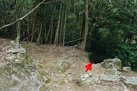 旧道のY字路に戻り、右折して南東へ15m下る