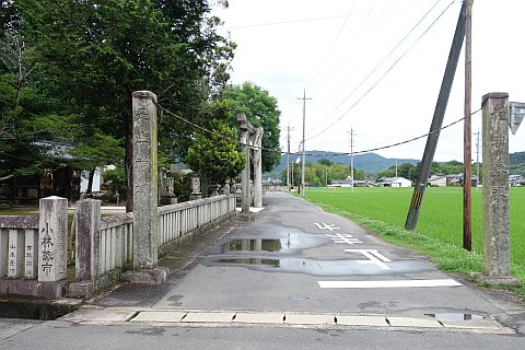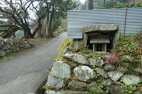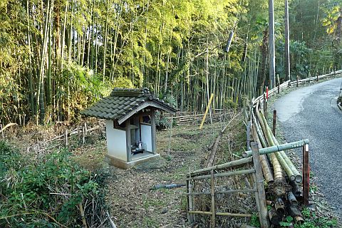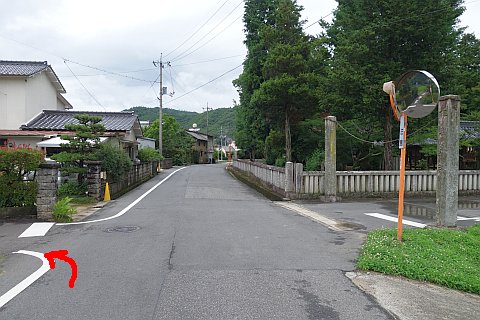 87番札所から西へ84m上って安清大年神社前の丁字路を左折し、南へ下る。