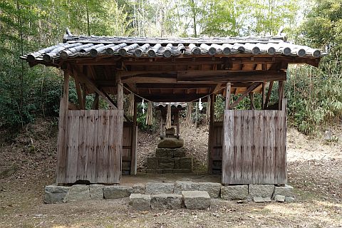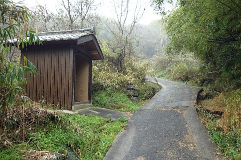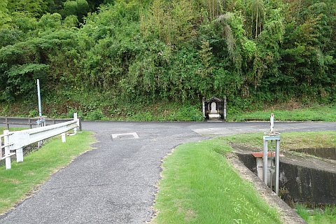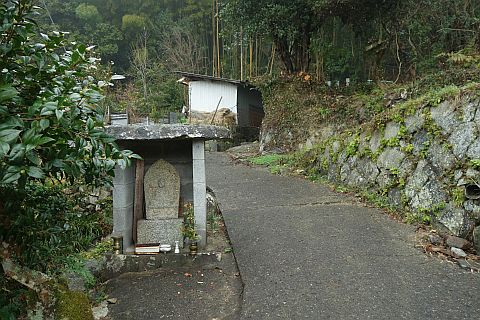 大師堂と墓地の横にある参道を南東へ25m、左折して東へ46m下る