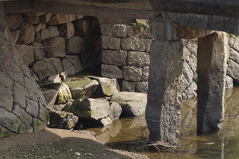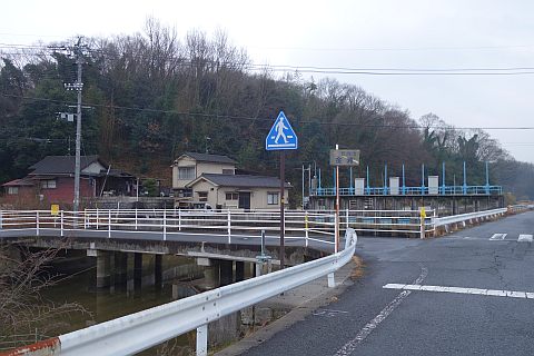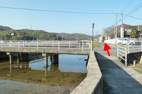 升池の土手道を北へ110m進んで左折し、石橋を渡る