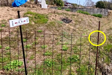 電柱の脇から北北東へ20m下る
