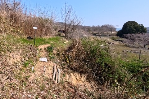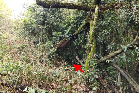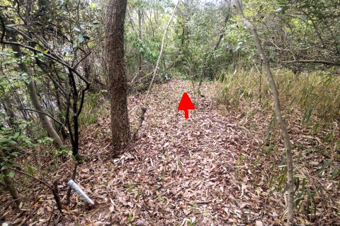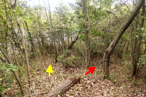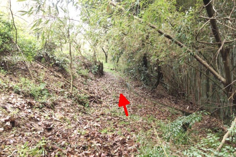 長福寺裏山古墳群の遊歩道の脇にある尾根道