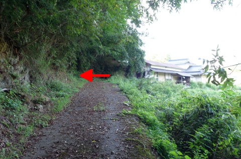 石垣が途切れるところで左折