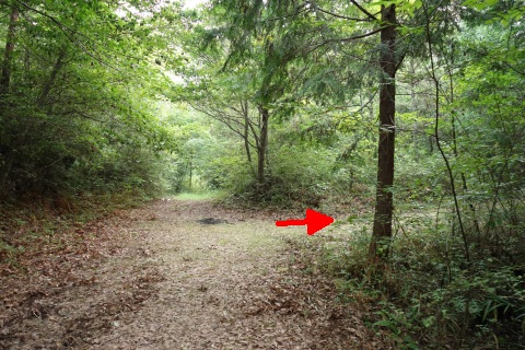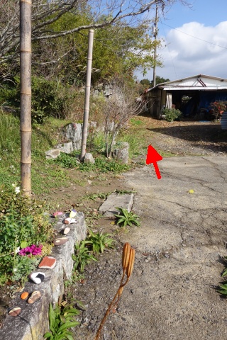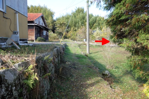 自然石地神前から東南東へ105m、南へ335m下る