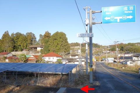太陽光発電施設がある所で左折