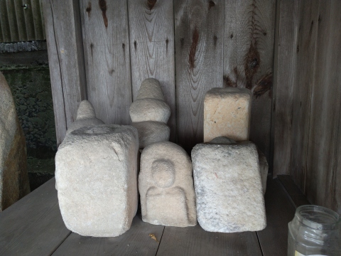 清水堂の前の自然石地神と自然石の燈籠