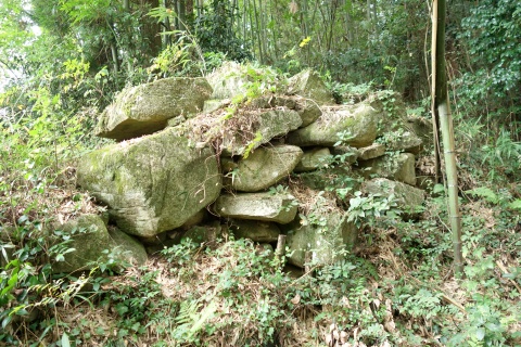 北東へ30m進んで石垣の前で右折し、南東へ10m進む