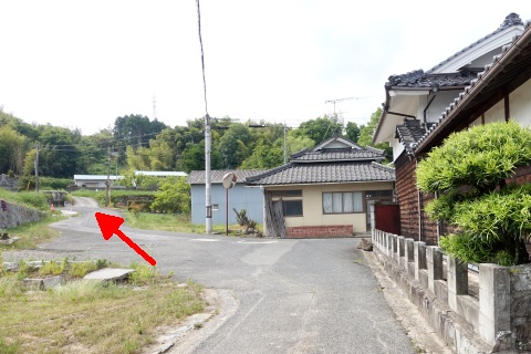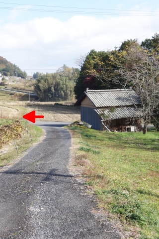 塚原古墳前の丁字路から、南へ110m進む