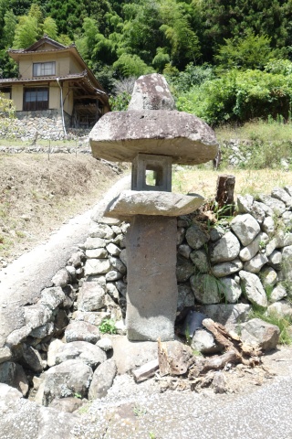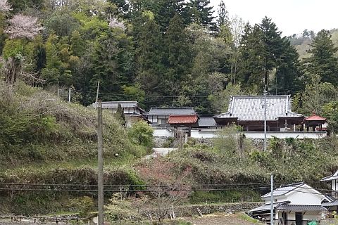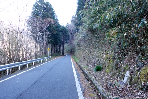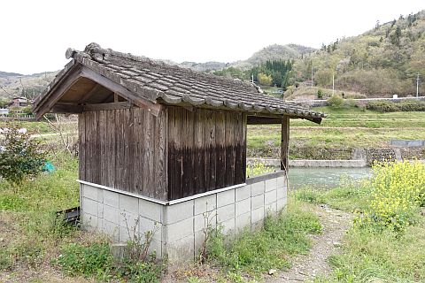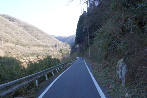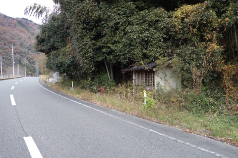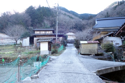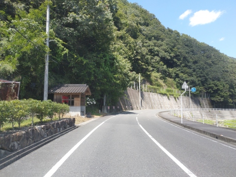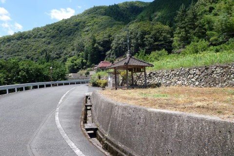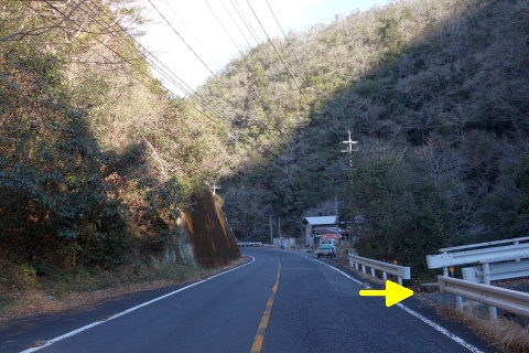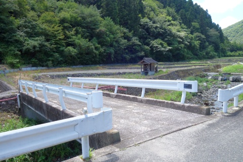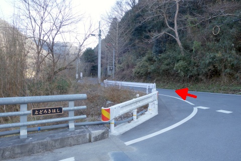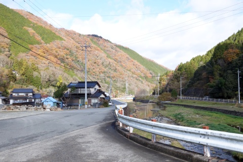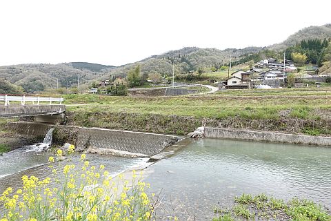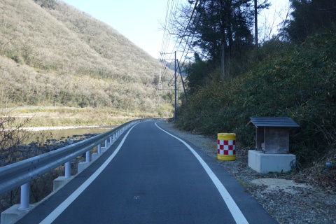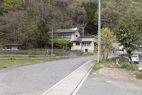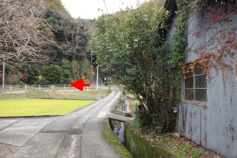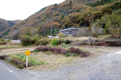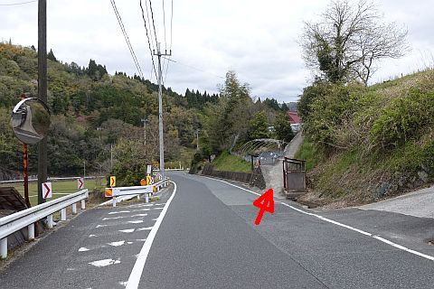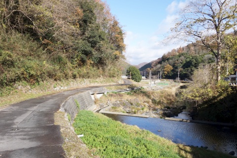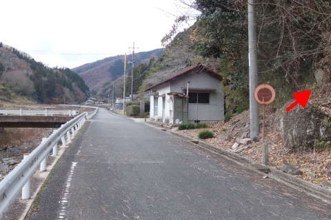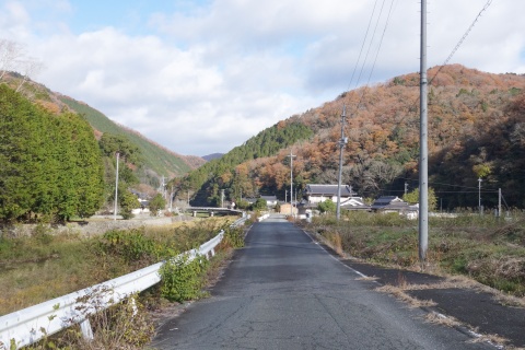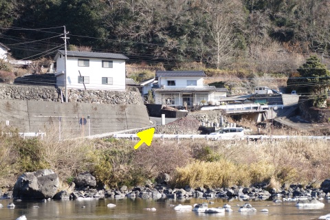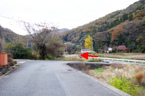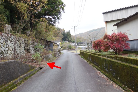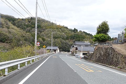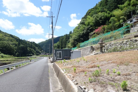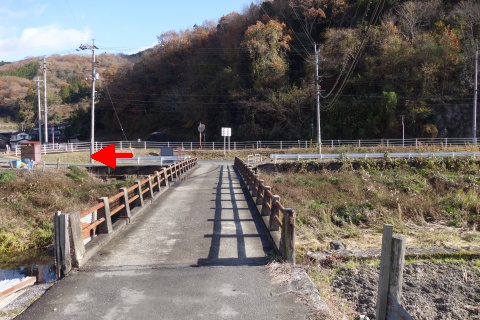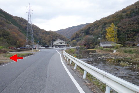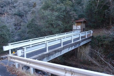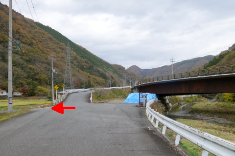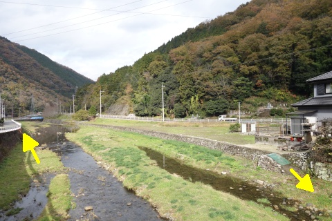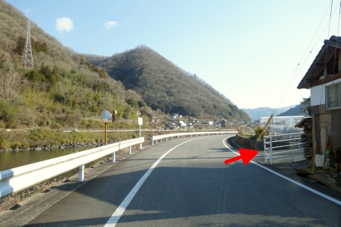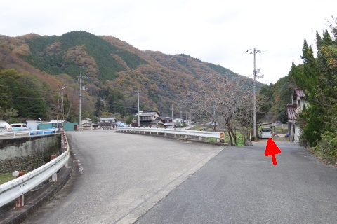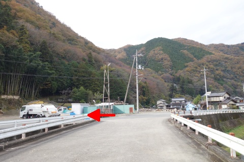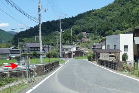 井原市と高梁市の境から180m下った所で右折して橋を渡る