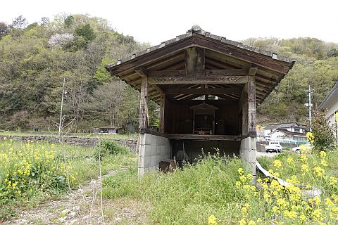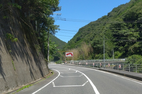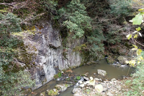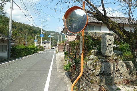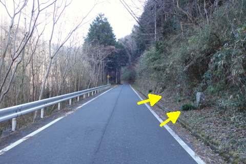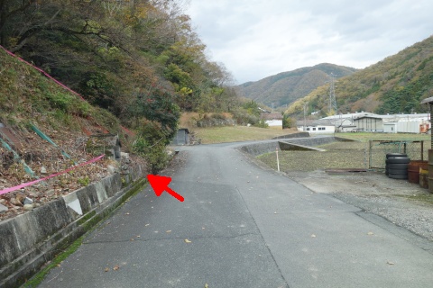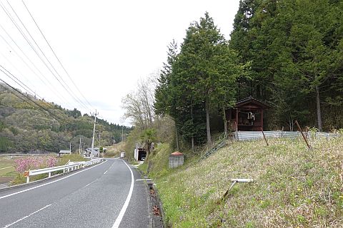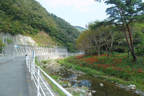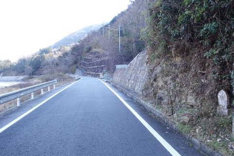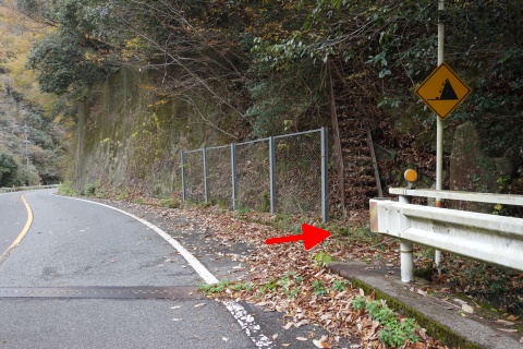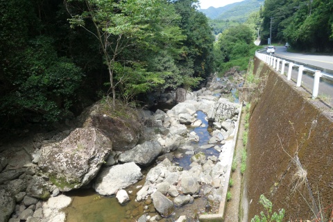 日名川を渡って直ぐの道路脇(落石のおそれありの道路標識の横)