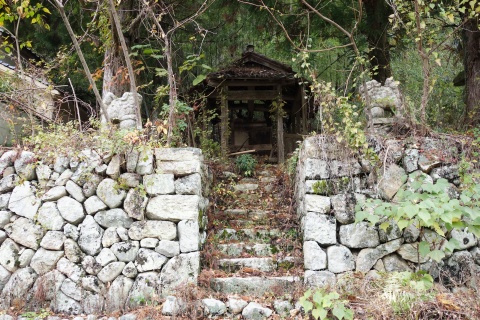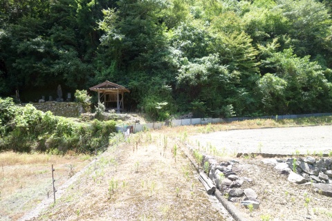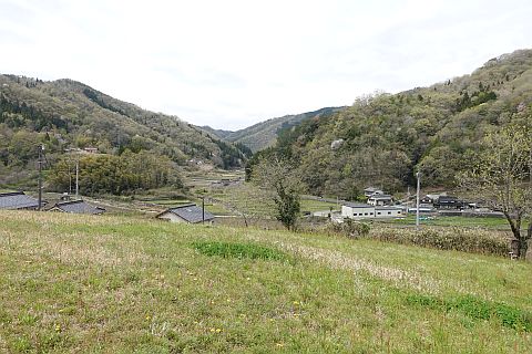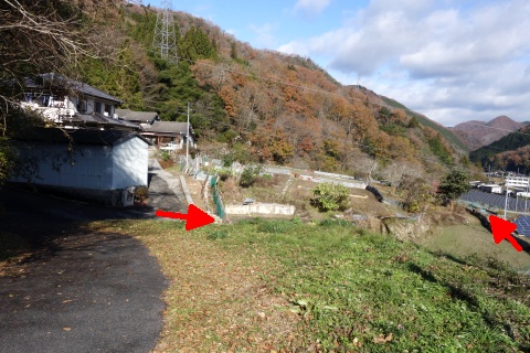 成羽町医療バス停留所前の十字路から細道を北北東へ40m上る