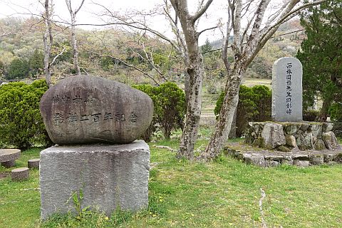 「林道轟線完成記念碑 施工延長 四六三五米 総事業費 五億六千五百万円