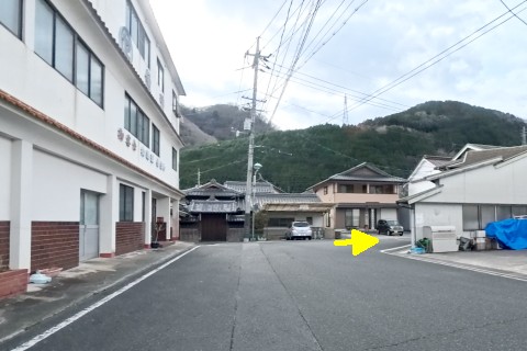 Y字路から西へ30m下り、Y字路から西へ45m進む