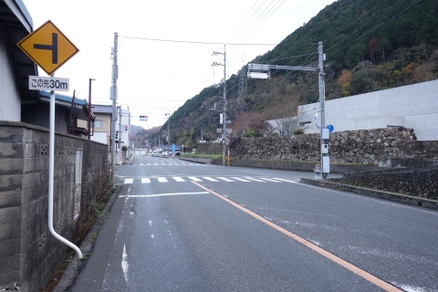 つきあたりの丁字路を左折して北東へ75m進み、十字路を右折。