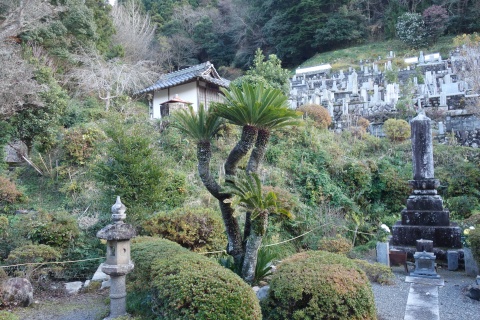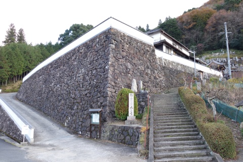 境内に山﨑家墓所(岡山県指定史跡)、愛宕山西国観音霊場の石仏(1番、2番)あり