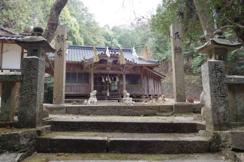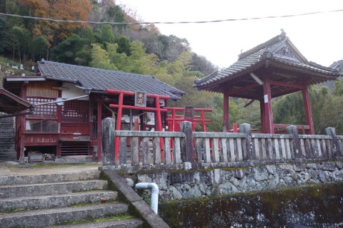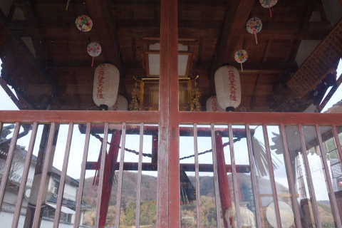 標高約400mの山上に鎮座。境内に正徳5年(1715年)の聖観世音菩薩立像あり