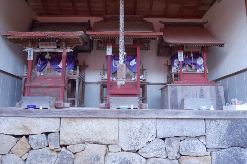 向かって左から日車天王宮(学問) 三光天王宮(安産) 荒熊天王宮(商売)