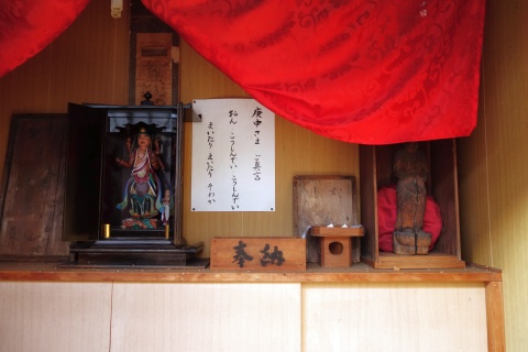 社の前に愛宕山西国観音霊場の観世音菩薩像(24番)あり