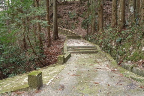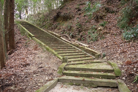 龍泉寺(標高約160m)の横にある石鳥居の所から急な参道を南へ約480m上る(標高差約240m)。