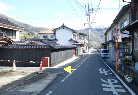 道しるべがある丁字路(高梁市宇治町宇治 道-146)を左折し、車道を南西へ15mほど上る