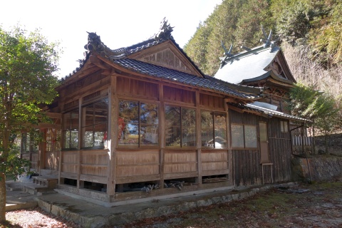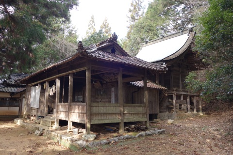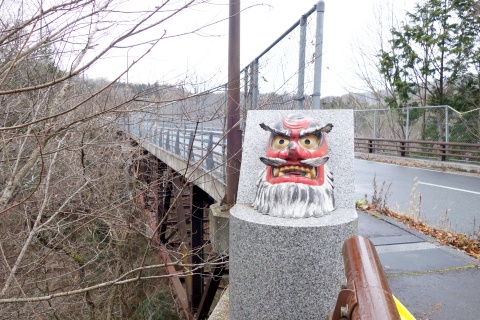 平成5年(1993年)3月竣工。高欄の親柱に神楽面(猿田彦命、大国主命)付き。