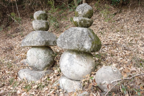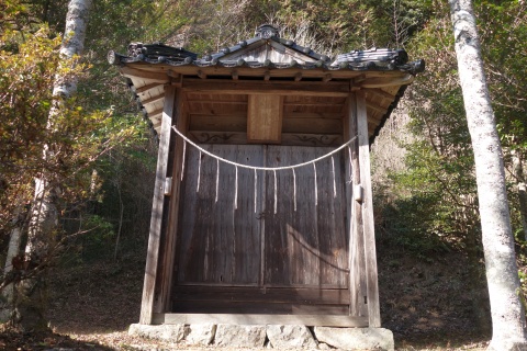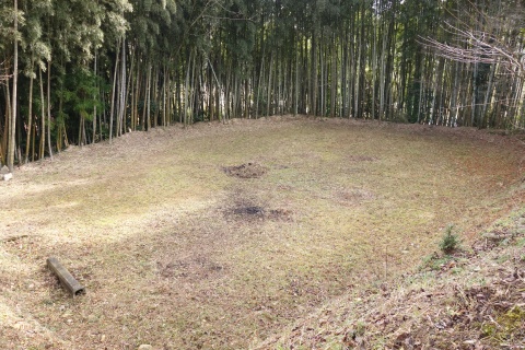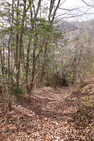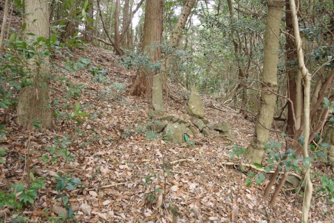 滝谷城の主郭跡(標高480m)は北へ80m程直登し、左折して西北西へ330m程登った辺りにある