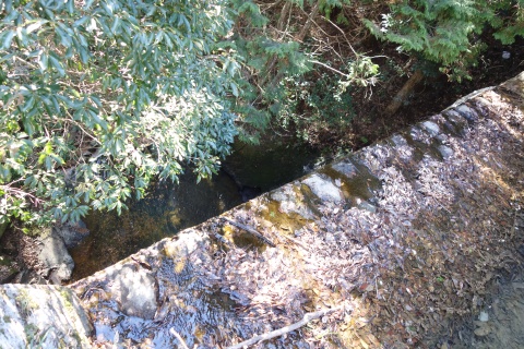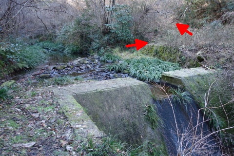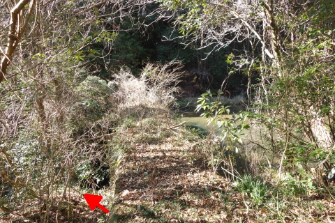 先行者の方の情報によると、砂防堤の東詰を右折し、