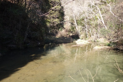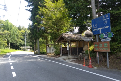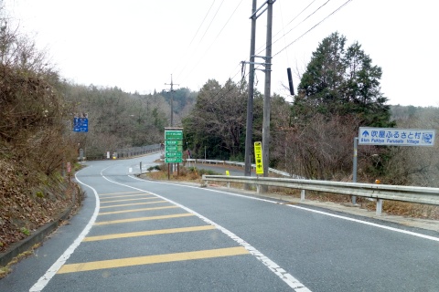 県道300号線を南へ1.7km下ると羽山渓。総門橋まで7.4km。