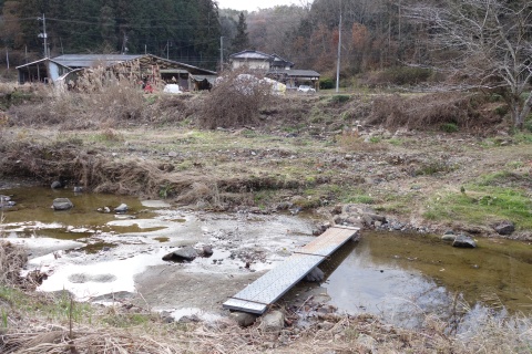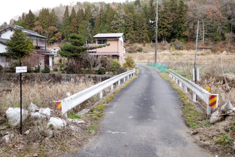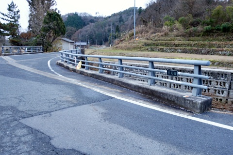 橋の西側は高梁市宇治町穴田(明治14年の塩田村との合併以前は旧丸山村、以降は旧穴田村)。