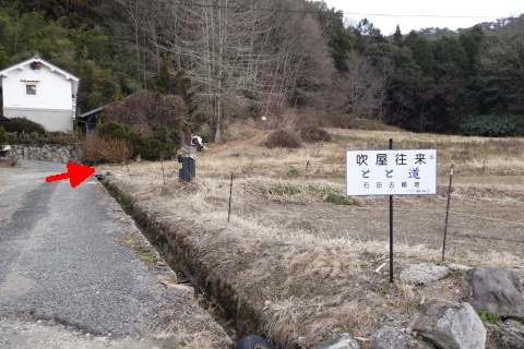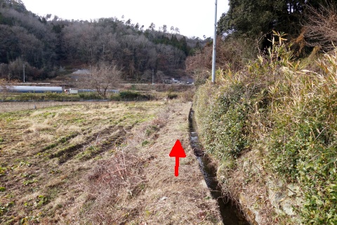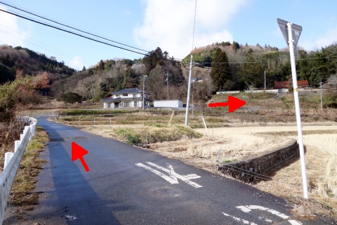 Y字路に戻り、県道を横断して右折し、西へ100m程上る