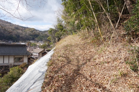 南へ140m、左折して東へ70m進むと、笹尾城跡の登り口に至る