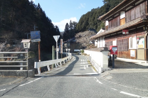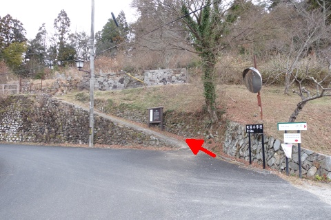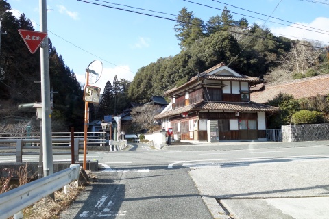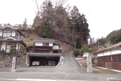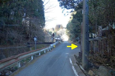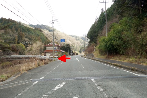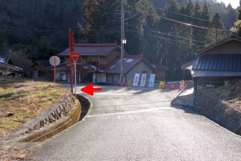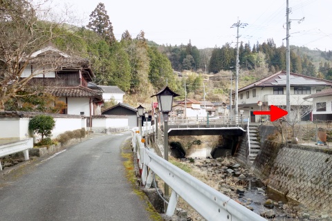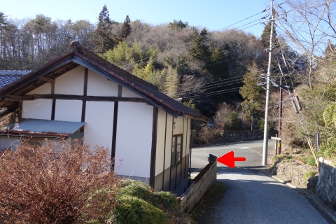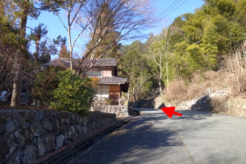 べんがらの道を北へ80m進み、左折して北西へ40m進む