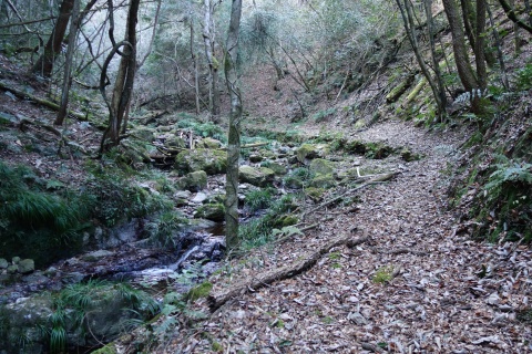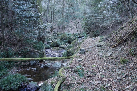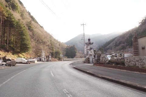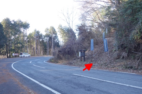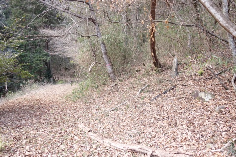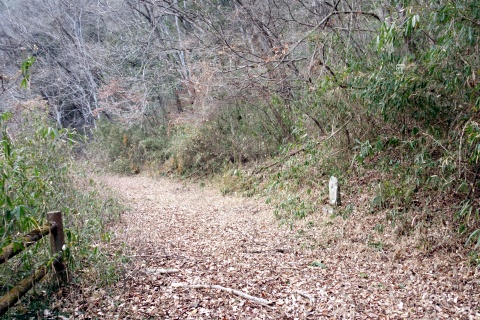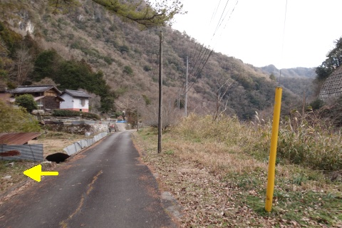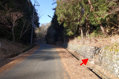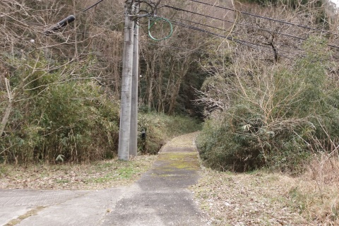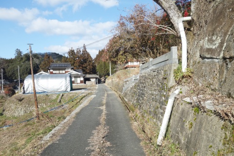 東へ300m下ると白石地区の車道(白石バス停の北40mの所)に出る