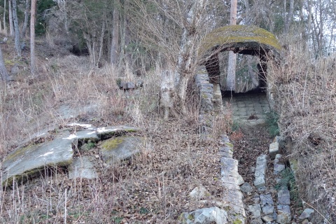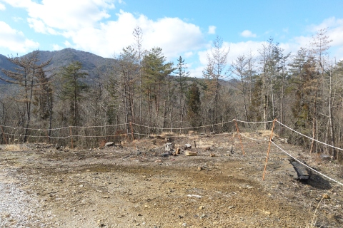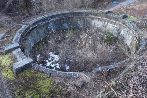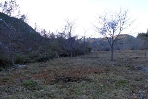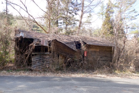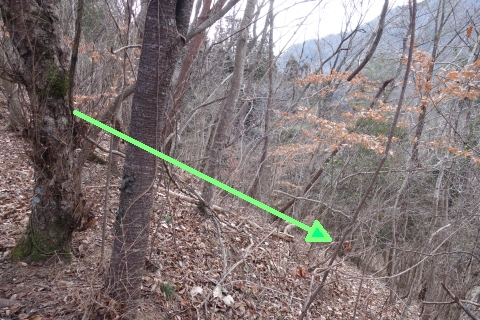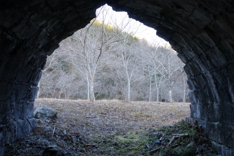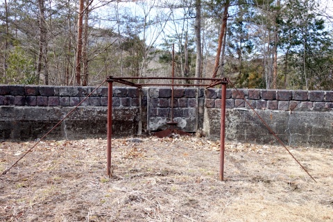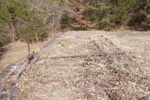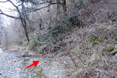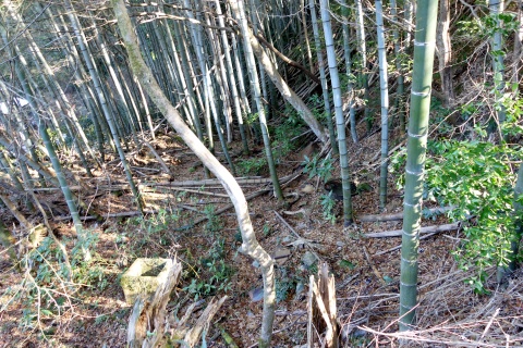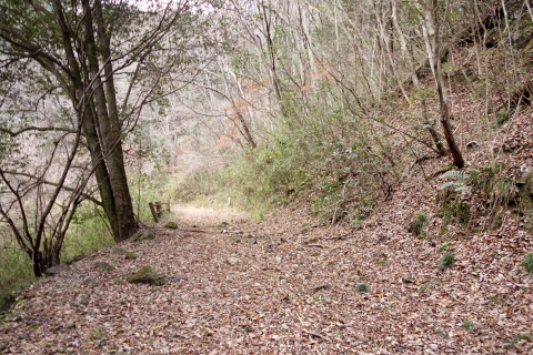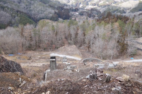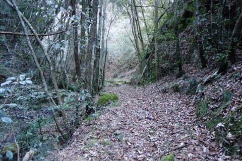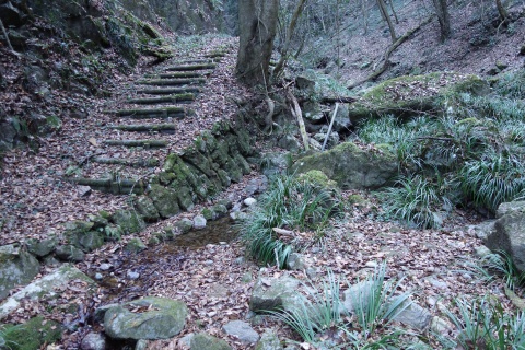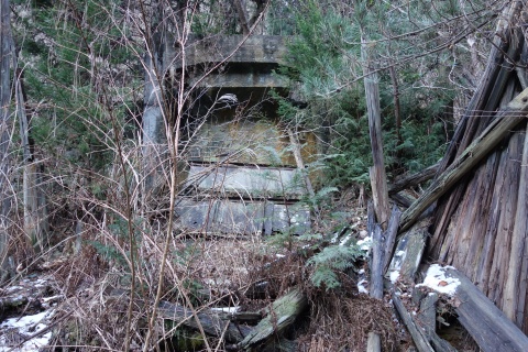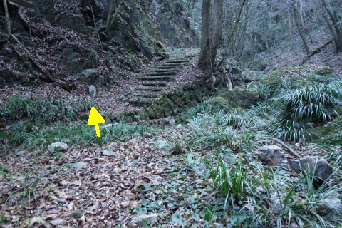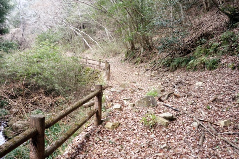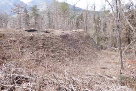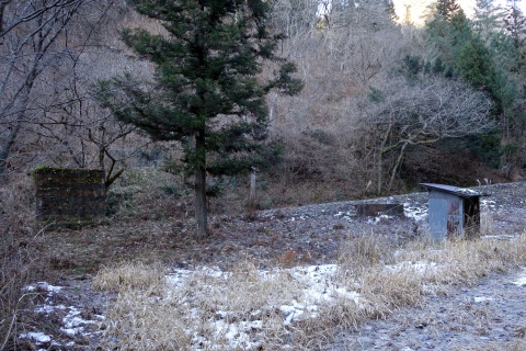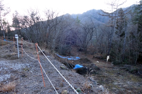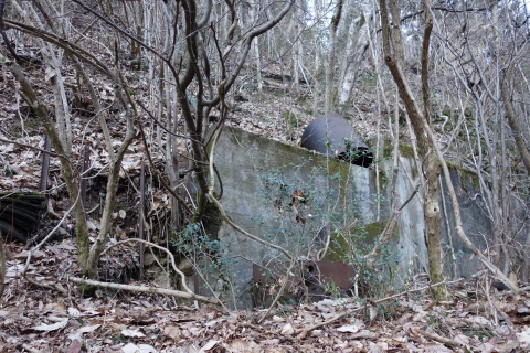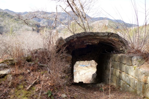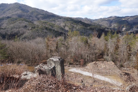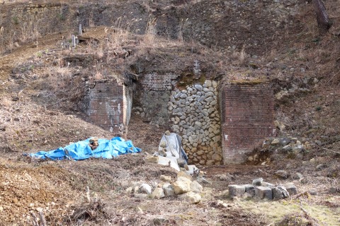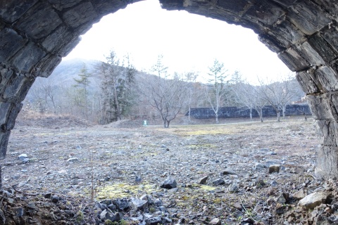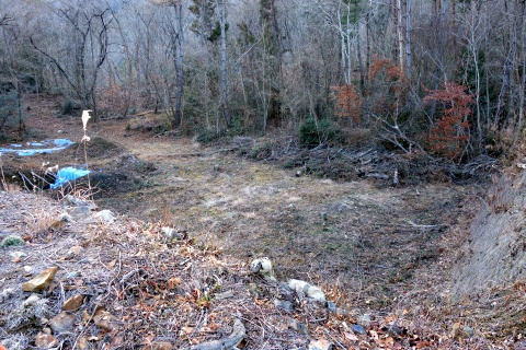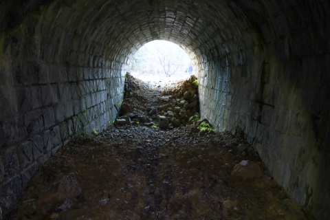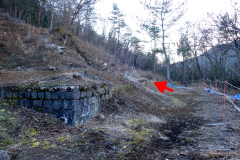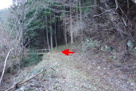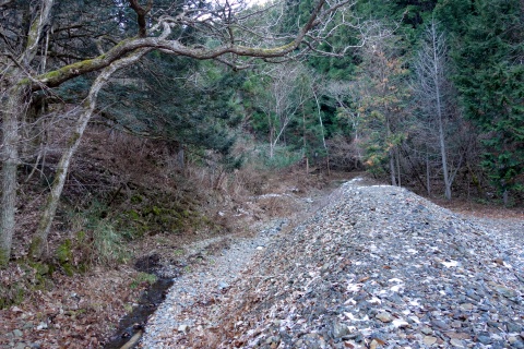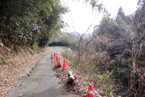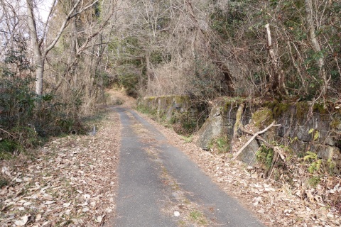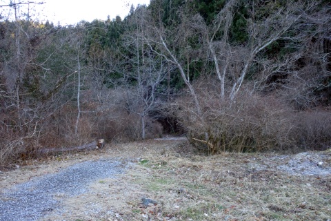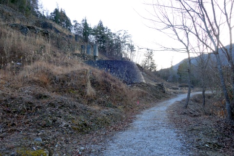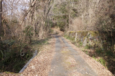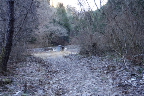 ここから先のトロッコ道跡は軽自動車でも通行不可
