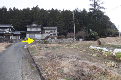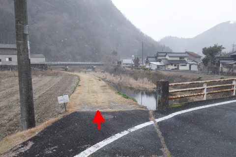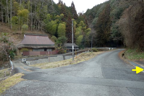 県道33号線を西へ160m、南西へ南へ430m下る