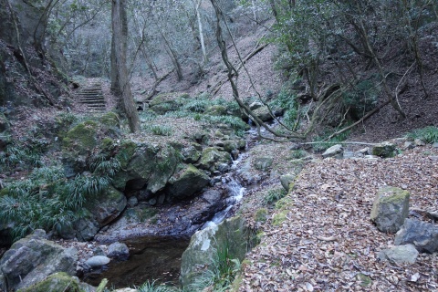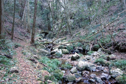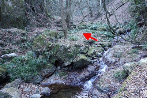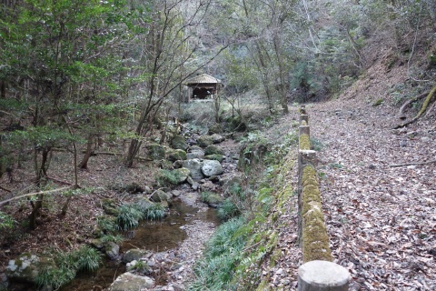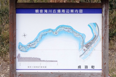 観音滝川特産物直売所の駐車場から川沿いの観音道を西へ600m程進んだ所にある。