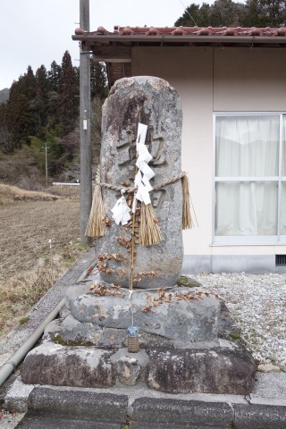 交差点の東(高梁市成羽町布寄90)に鎮座。祭神未確認。