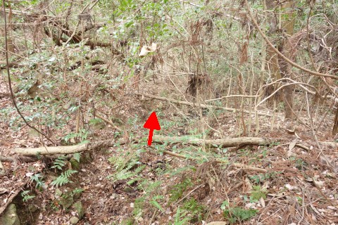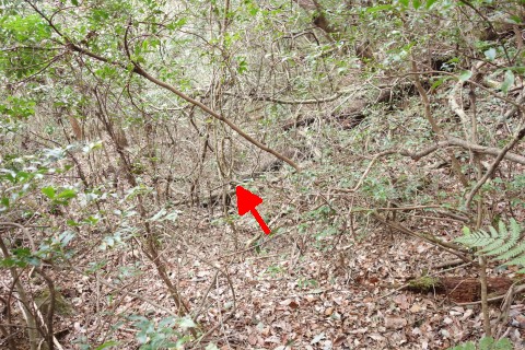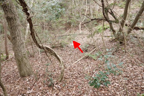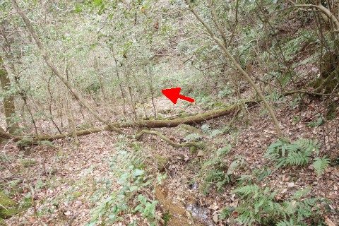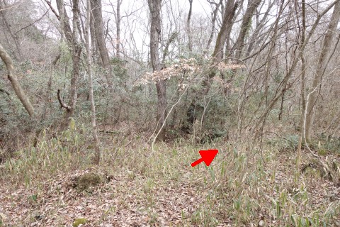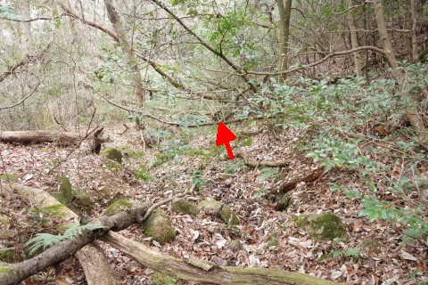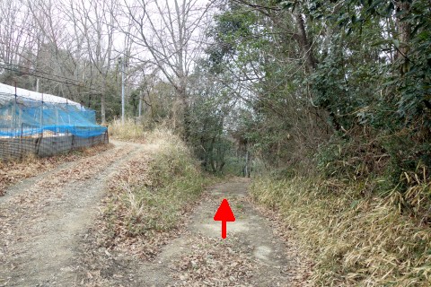 変則十字路からコンクリート舗装の道を北北東へ90m上る。