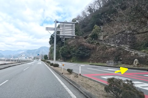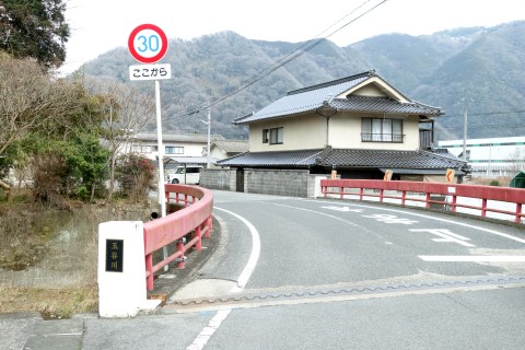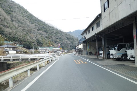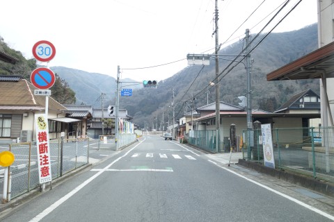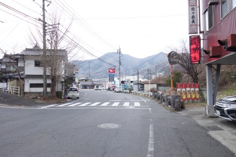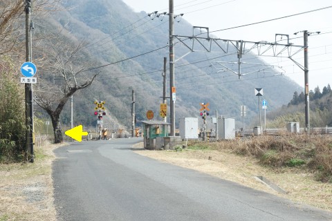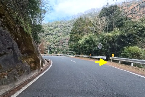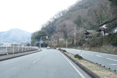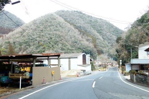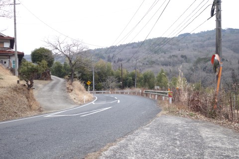 山際で県道166号線の丁字路を右折