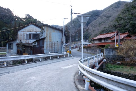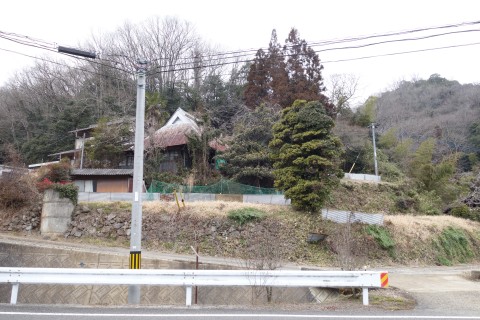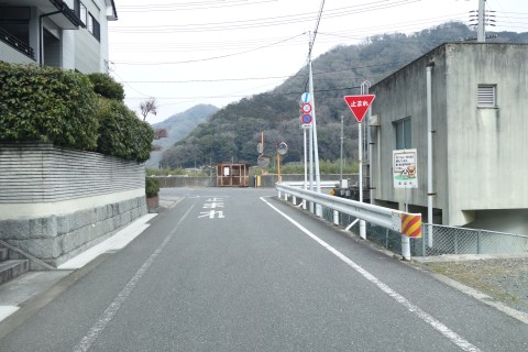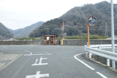 井原市美星町三山の赤の谷地区の旧道との交差点