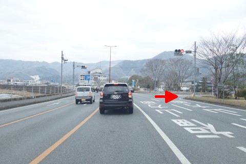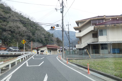 県道166号線の変則十字路を右折